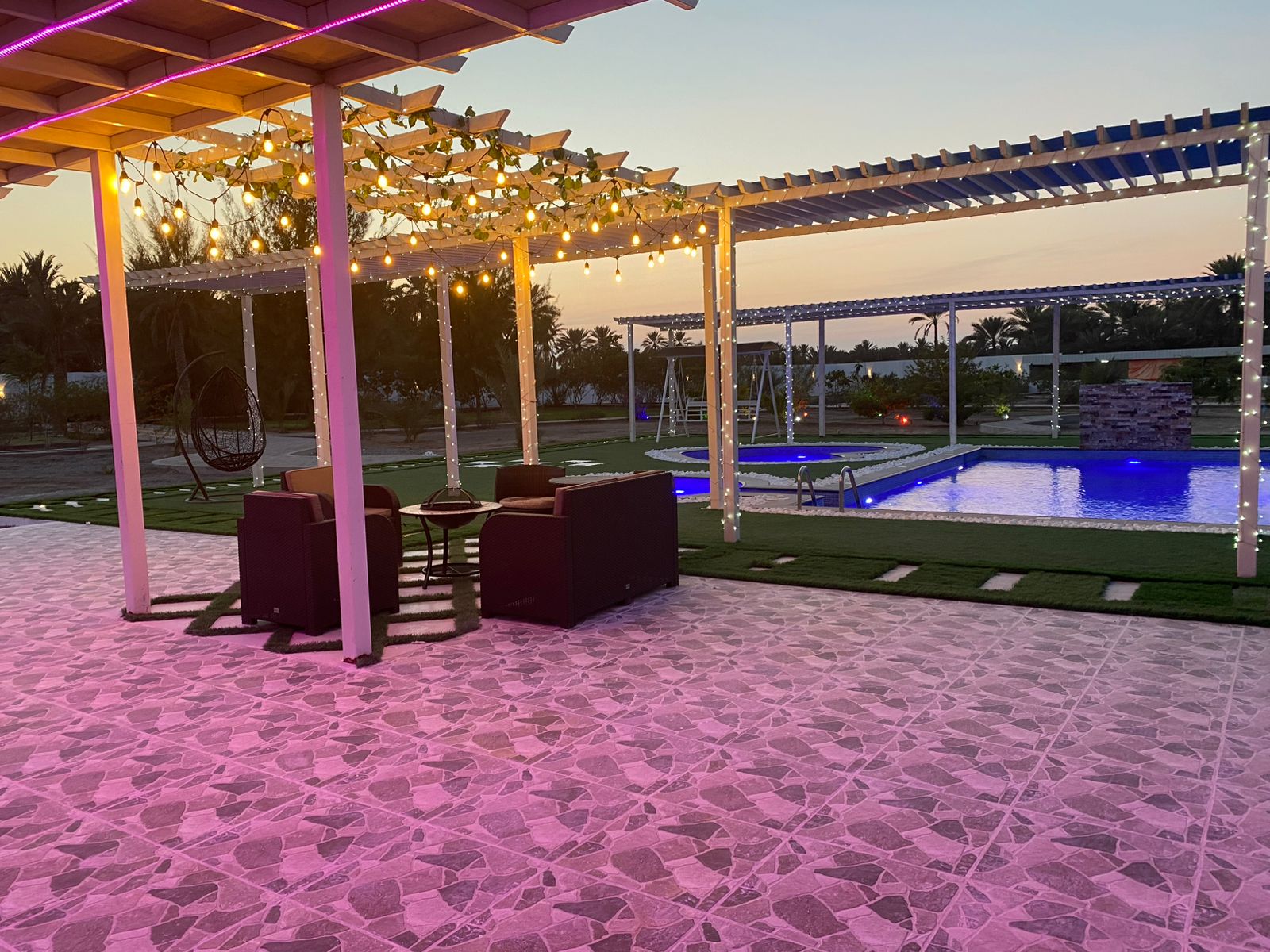Location: Situated in the heart of lush farms at Wadam Al Ghaf, offering a peaceful and private environment ideal for relaxation and leisure.