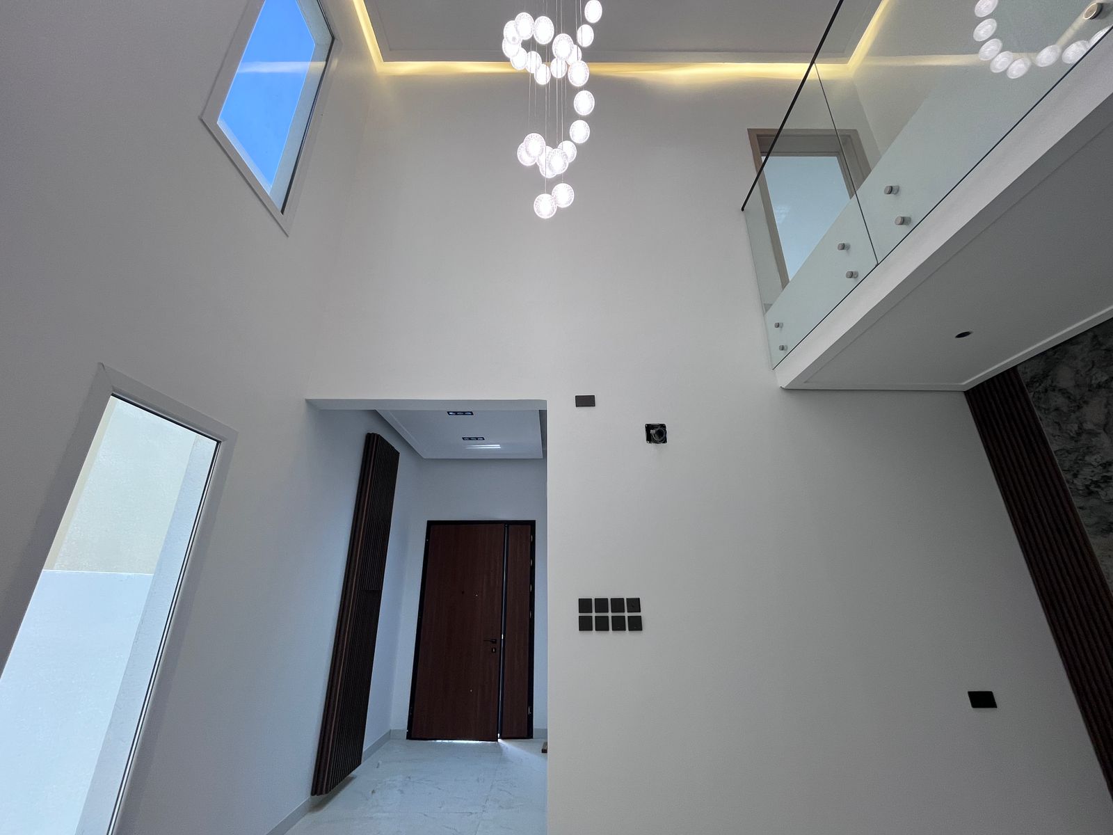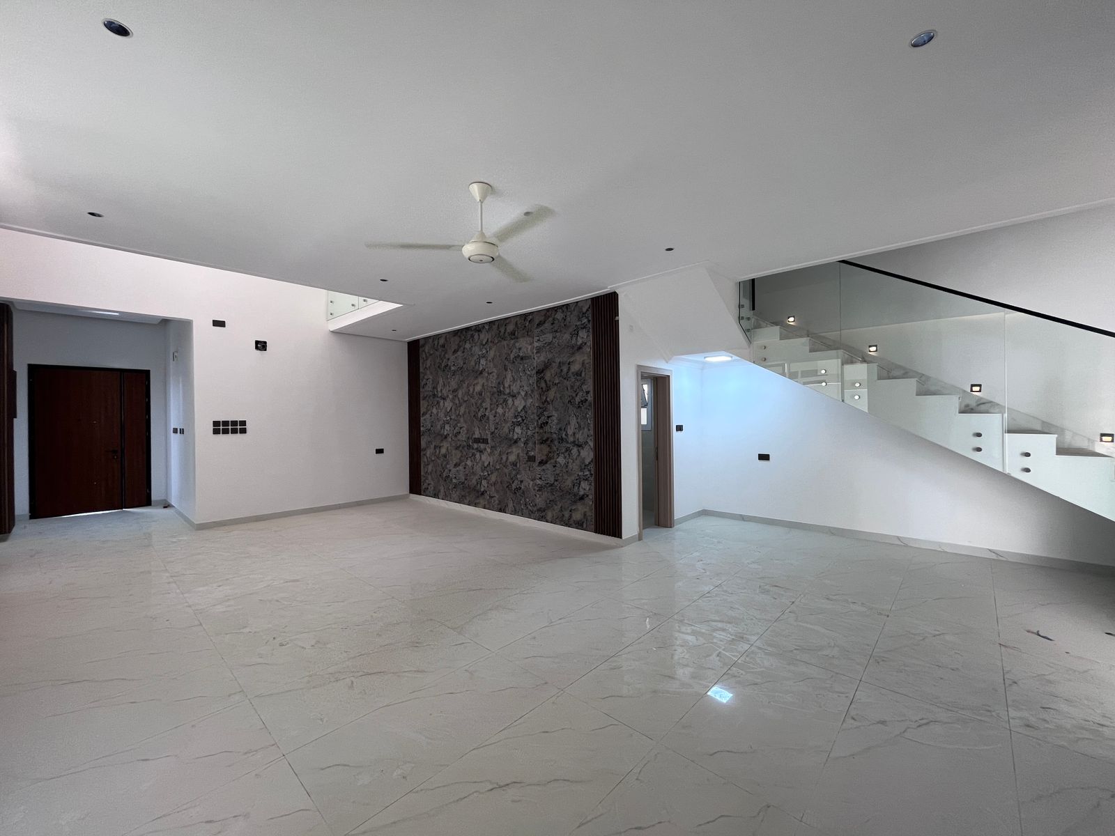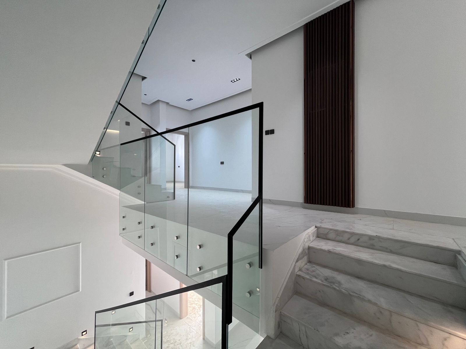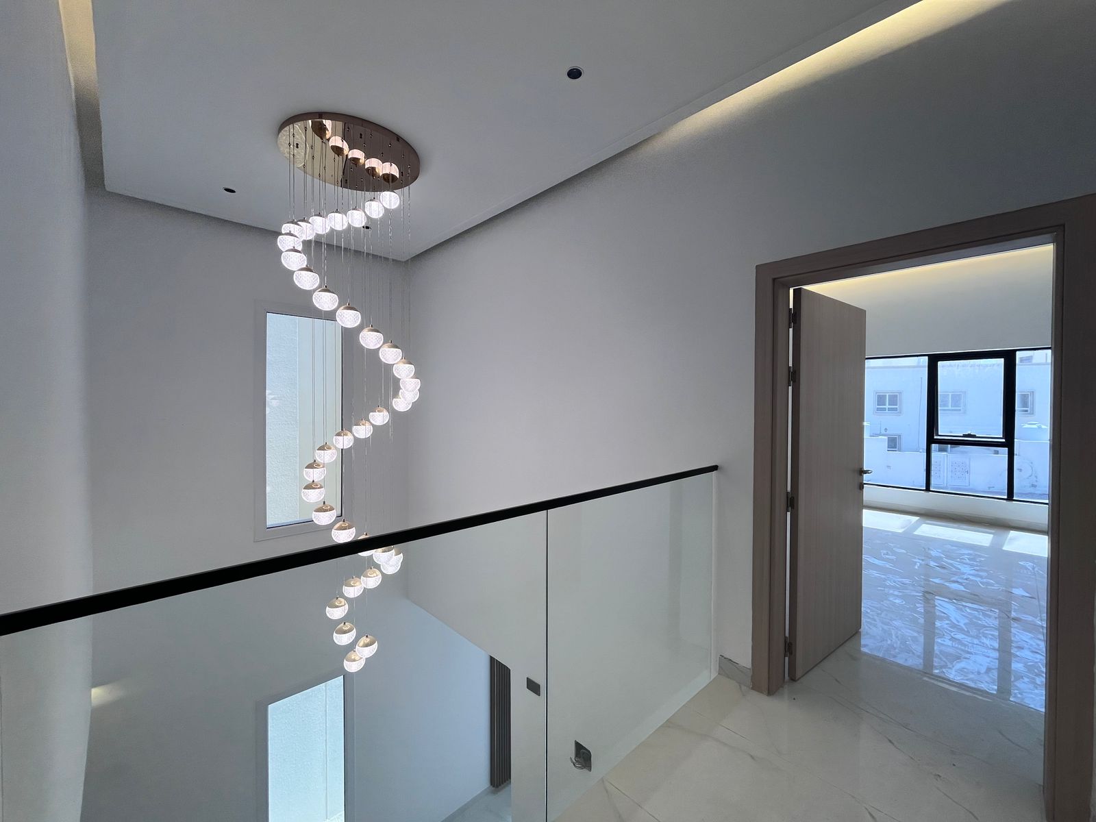 - Luxurious staircase area with designer lighting